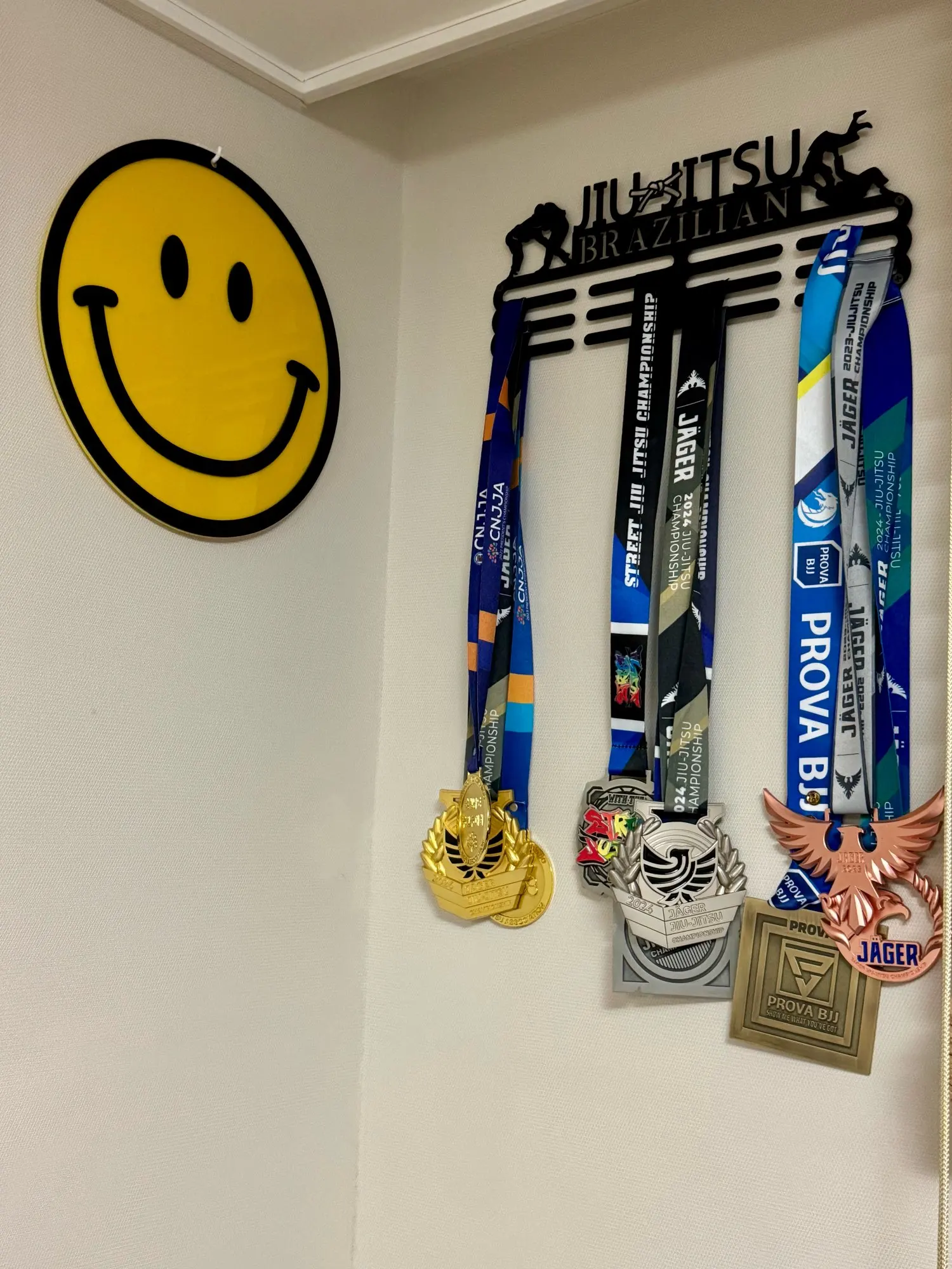 Jiu Jitsu Brazilian Medal Medal Display Hanger: Our medal holder display aims to motivate jiu jitsu brazilian. Our medal display is designed with jiu jitsu brazilian as the theme, with jiu jitsu brazilian patterns and many jiu jitsu brazilian poses. Gorgeous and beautiful.